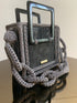 La borsa è formata da una rete di plastica nera a trama fitta per una maggiore durata ed è realizzata con un filato melange beige e grigio che aggiunge un senso di eleganza.
