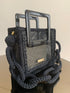 Realizzata con un filato nero che offre un tocco di lusso, la borsa è fatta di una rete di plastica nera per garantirne la durabilità. Presenta un manico in resina ed è realizzata a mano per garantire la qualità del prodotto.